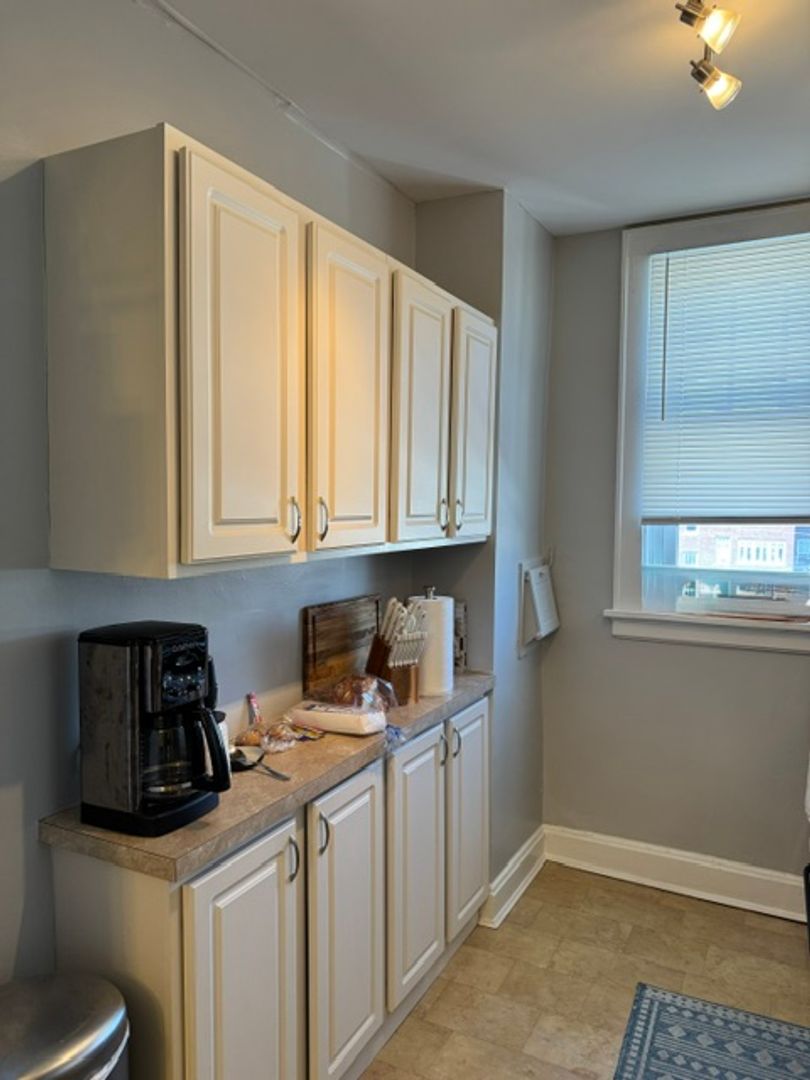 Off-street parking included, extra storage, and coin-operated laundry in the basement. Full-time maintenance staff to handle your needs. Online bill pay. Pets are welcome (additional fee, restrictions apply). Available for occupancy November 20th, 2025, $1,199. There is an additional $75 utility fee for heat, water, sewer, and trash collection (for single occupancy). Residents pay for gas (cooking stove only) and electricity in the unit.