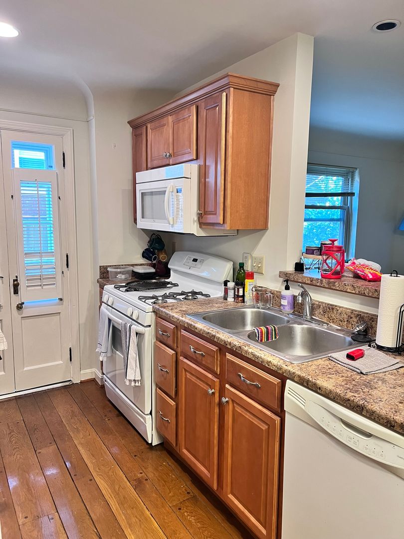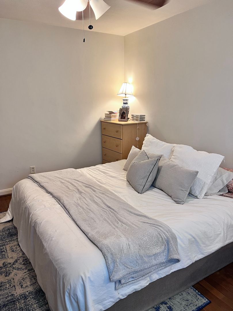 AVAILABLE February 1, 2026 with free January Rent! Spacious one-bedroom, one-bathroom apartment with open floor plan and patio. This apartment is on the first floor of a well-maintained nine-unit building. The apartment features a dining space off of the kitchen and hardwood floors throughout, except for the kitchen and bathroom. The kitchen comes equipped with a dishwasher, refrigerator, and electric stove. The bedroom features a walk-in closet. Private patio directly off the kitchen. Updated windows throughout the building with security locks and window AC units provided.