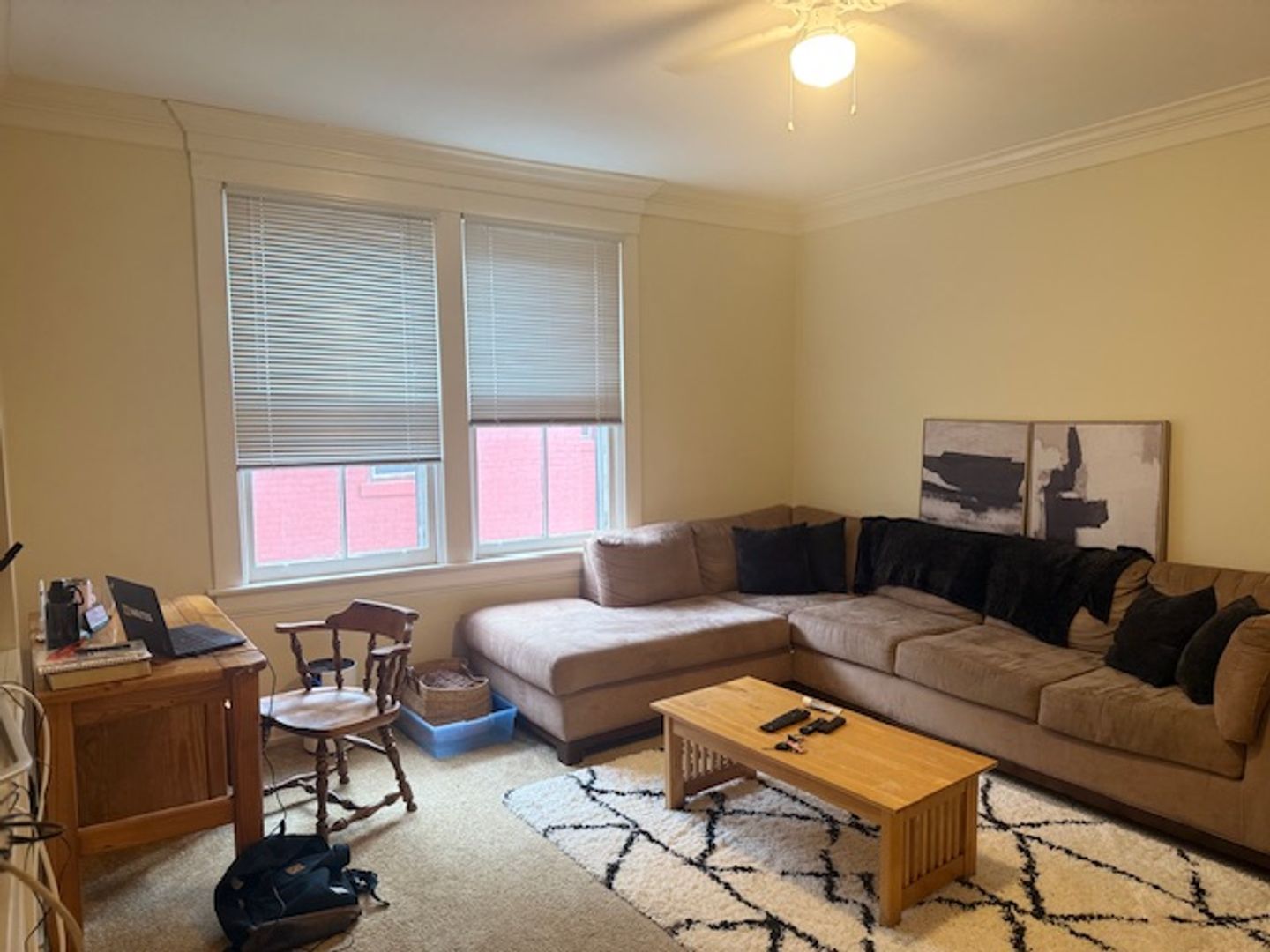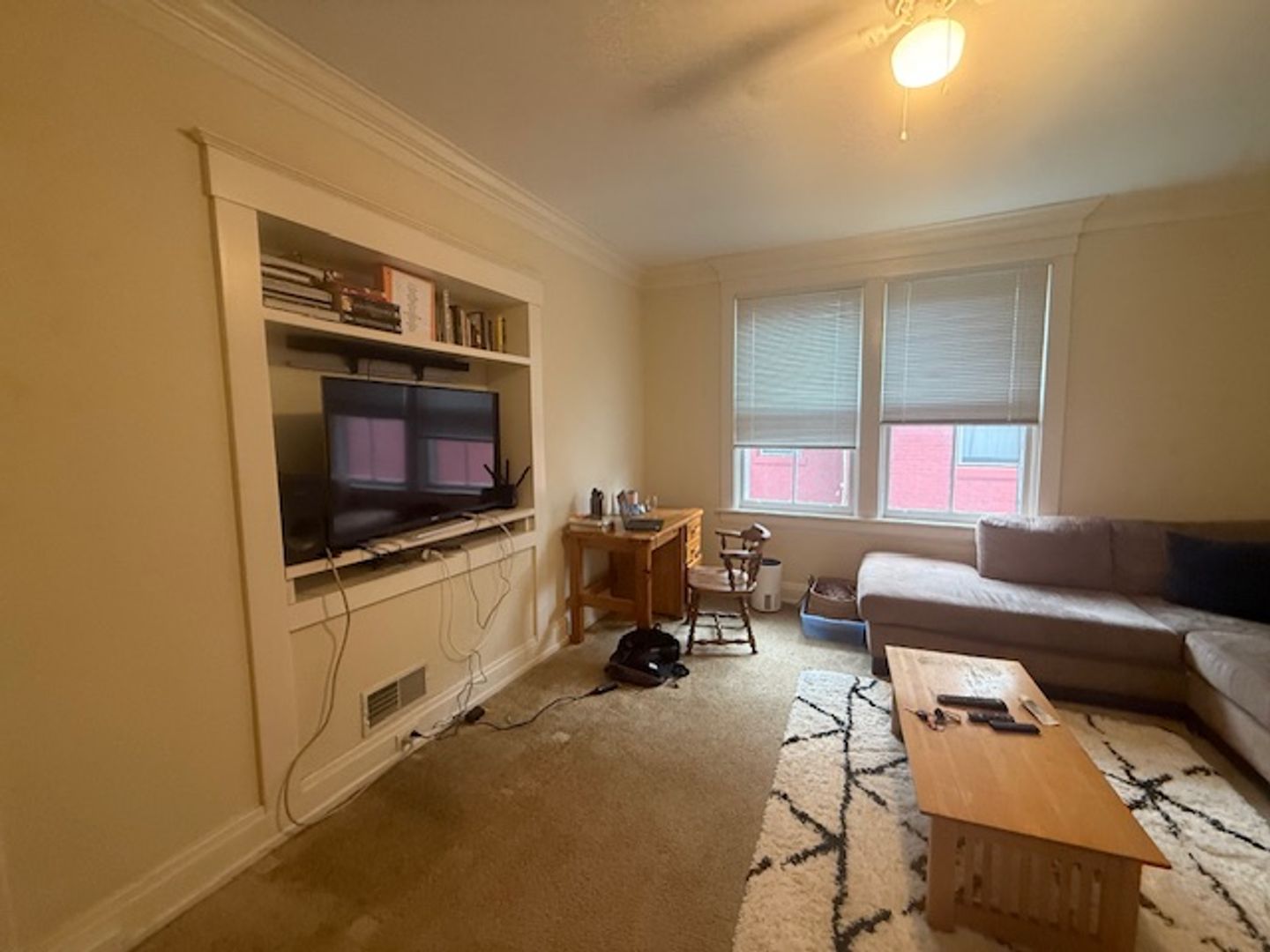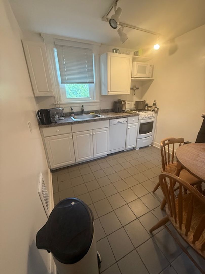 The kitchen comes equipped with a white gas stove/oven, refrigerator, and dishwasher, white cabinets, and ceramic tile floor. The eat-in kitchen has enough space for a table. The bathroom was recently renovated with subway tile. This spacious apartment , built-in storage in the living room, a linen closet, and a closet in the bedroom.